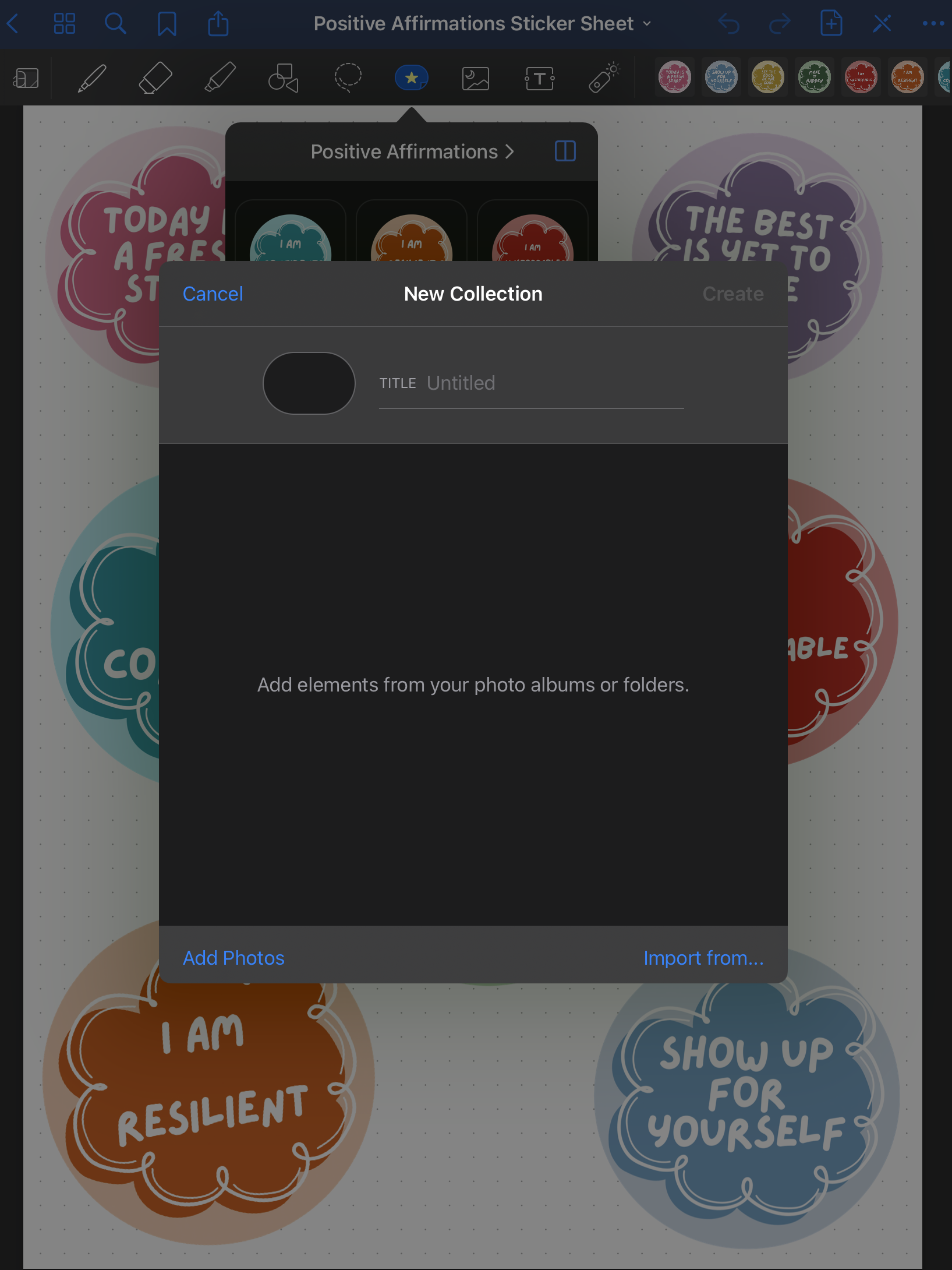 When you click on ‘Import from…’ it will let you select the png or jpeg file you want to add to the collection. This is a good method if you do not have (or prefer not to use) a sticker book or sheet.