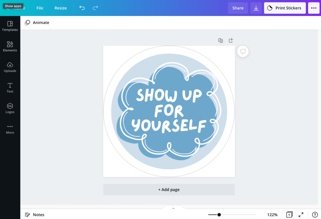 Canva does have some templates for stickers that you can edit, or you can create your design from scratch.