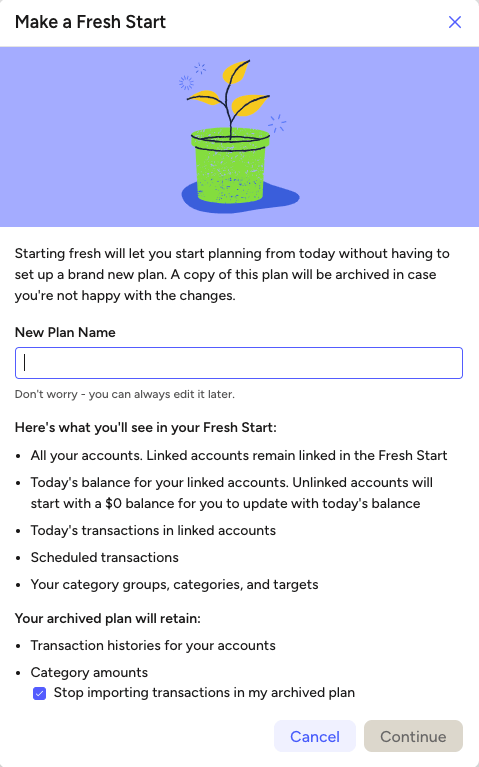 Luckily, I found their “Make a Fresh Start” feature. It let me reset from that day while still keeping all my categories and linked accounts. That meant I could give myself grace without starting over from scratch.